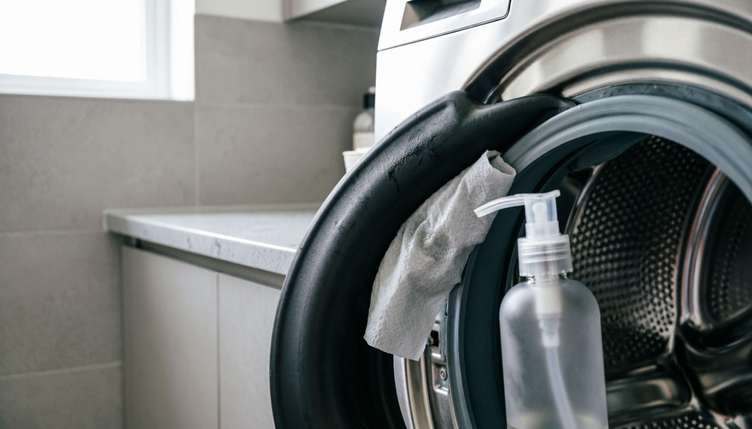 The sour smell that shows up after a few months usually starts inside the rubber door gasket, where detergent residue and body oils quietly collect.